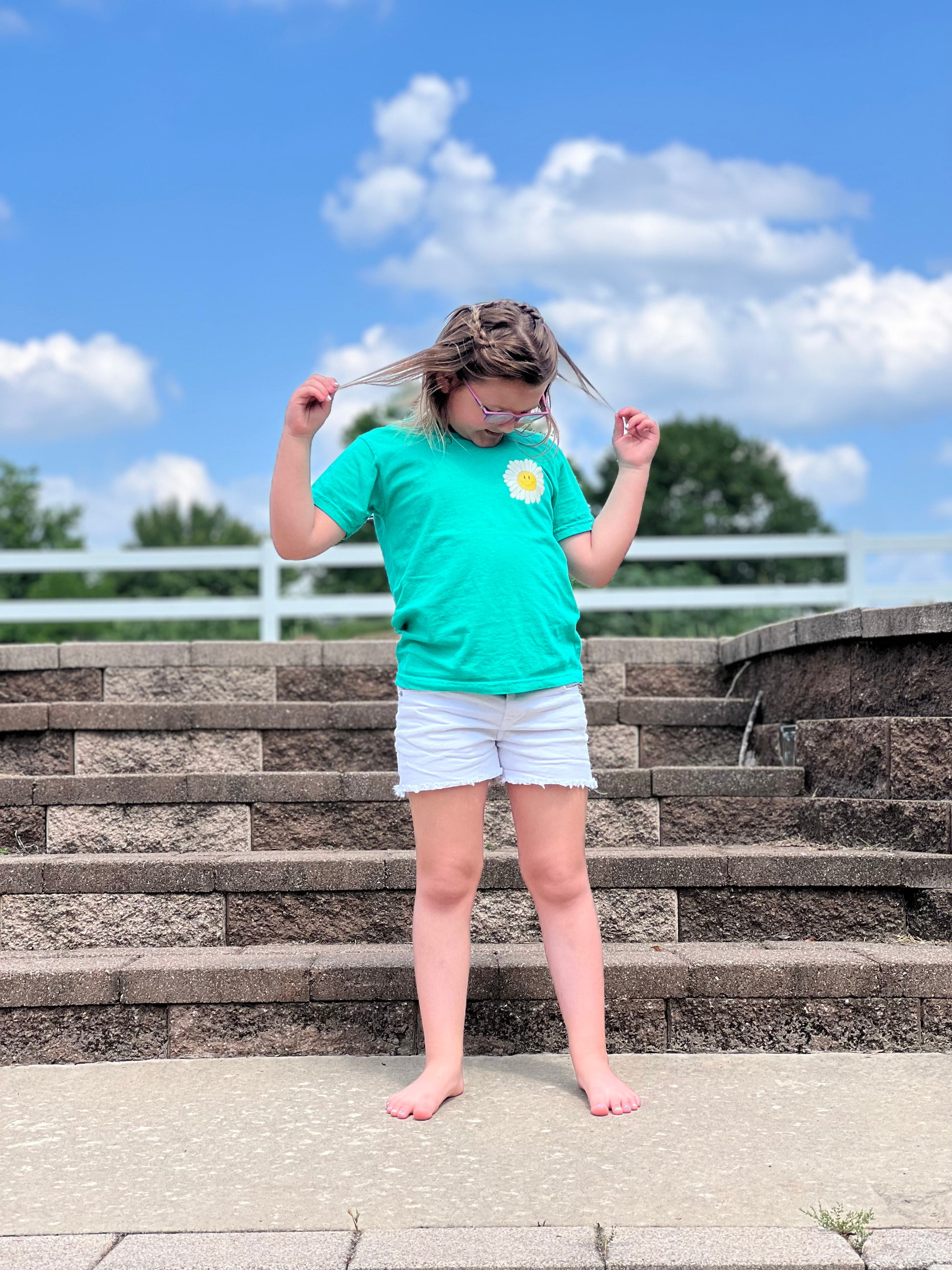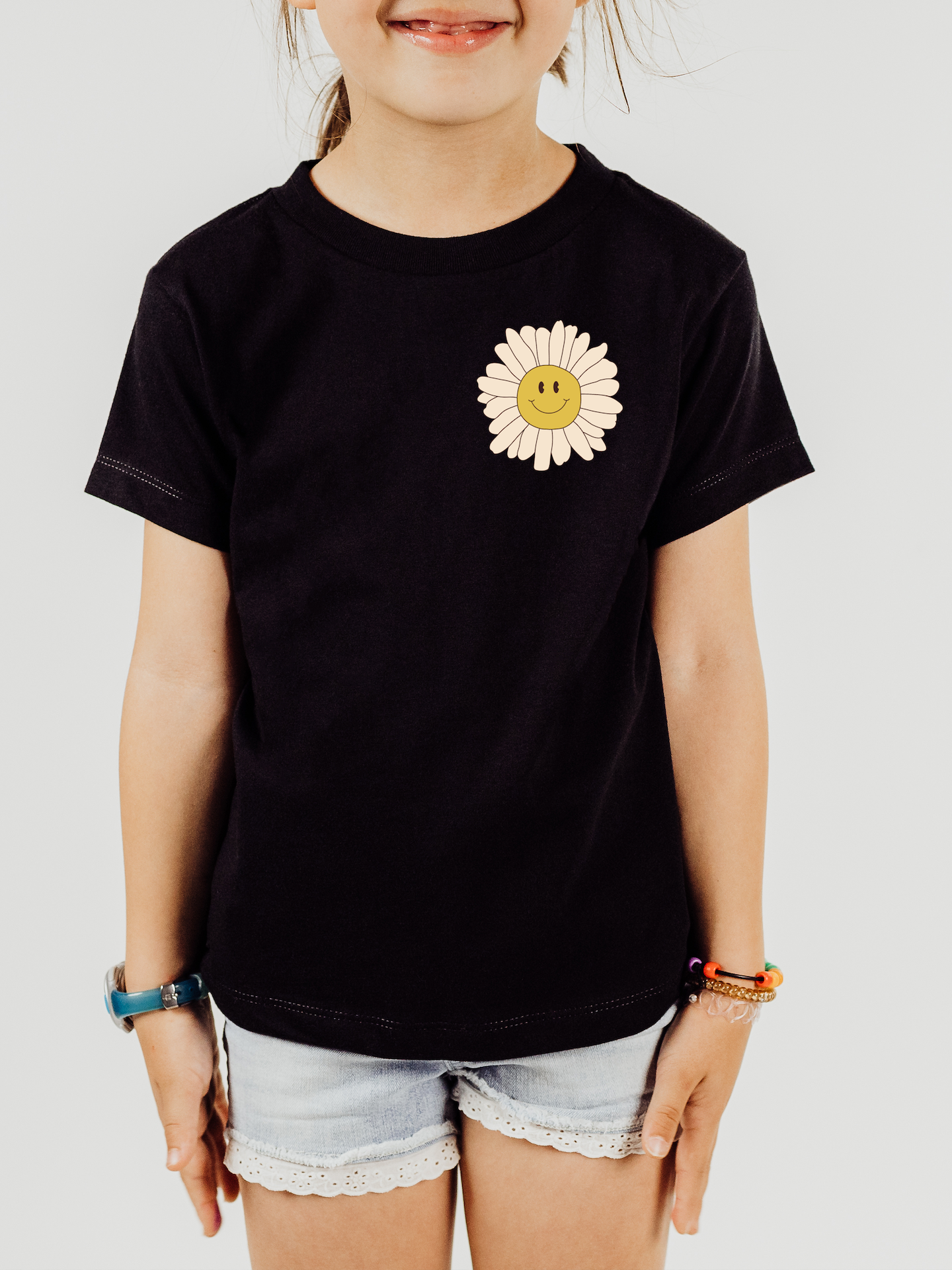 The graphic itself is a cute and whimsical depiction of a child, with a playful and adorable expression. The design is printed using high-quality, vibrant inks, ensuring that the image remains bright and colorful even after multiple washes.